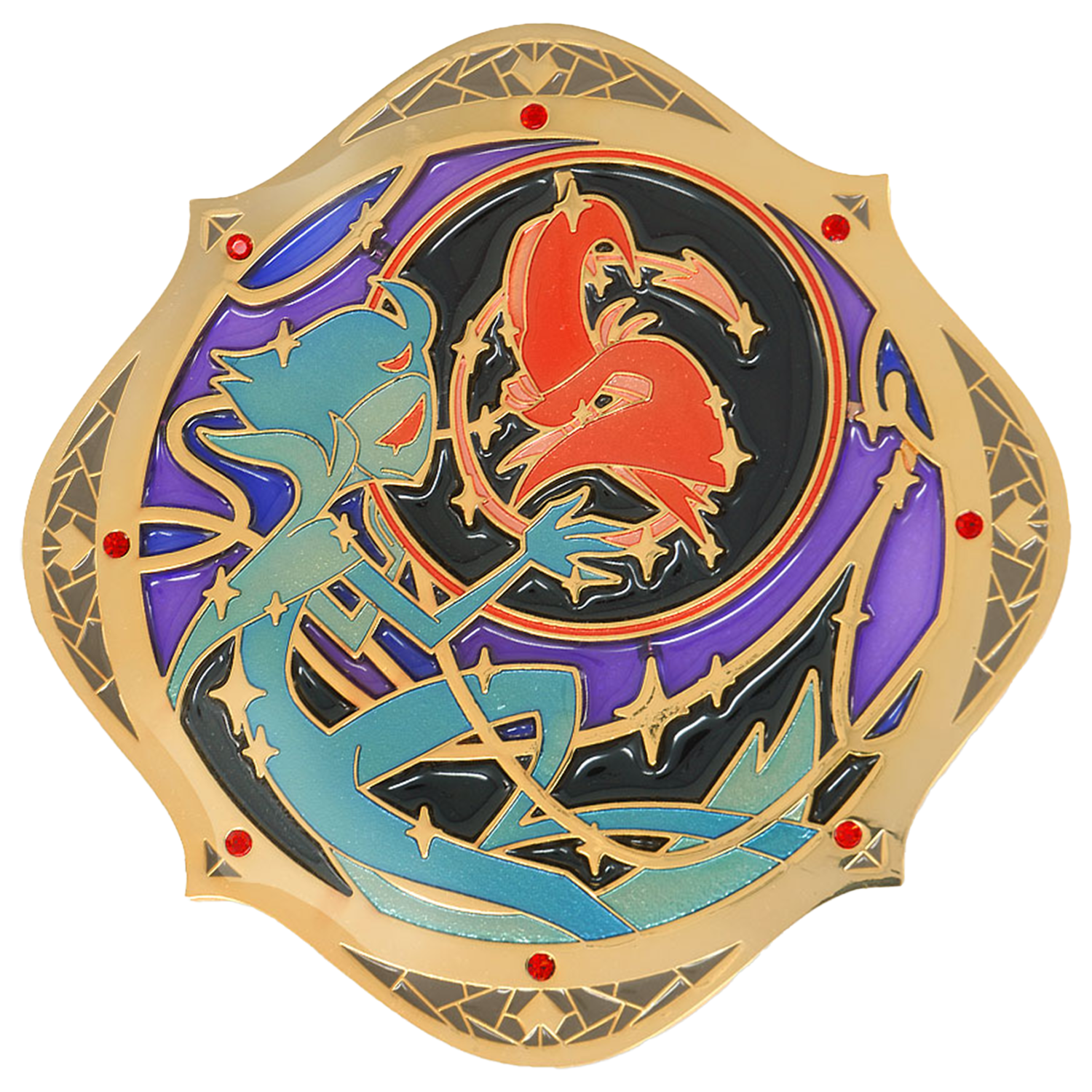 The pin is approximately 5.5 in wide. Enamel and glitter material.