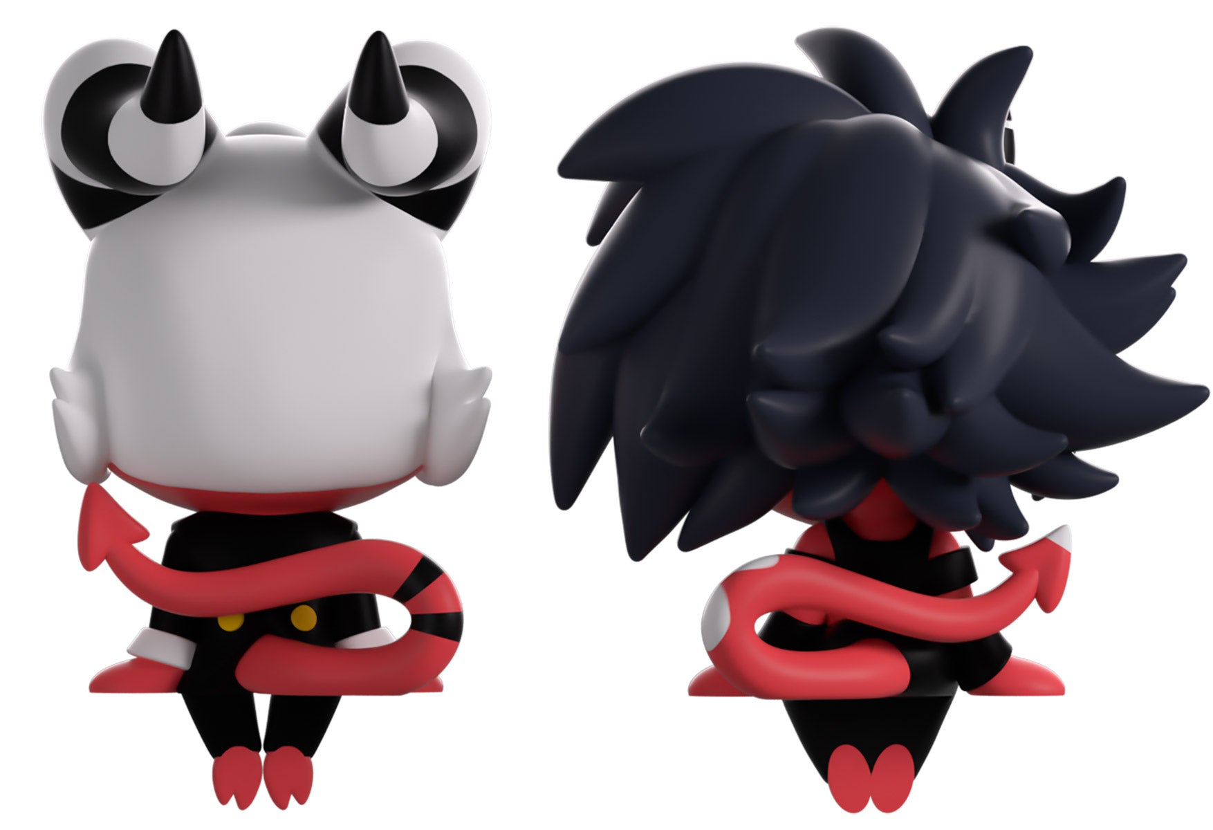 Straight from Hell, Millie and Moxxie have downsized with their return to Youtooz to perfectly sit atop your monitor! Sitting at 2.2 and 2.3 inches tall respectively, a thin smile crosses Moxxie’s red face as white hair falls down either side and a pair of striped horns curls backwards as they wear a black suit and red bowtie. While to their side, Millie’s dark grey hair flicks to the side above lashed yellow eyes as a pair of striped horns poke out from the top of her head and a thin tail curls behind. The absolute best companions while you’re working, picking your next target, or just hanging out, they’ll make sure to always be right in your line of sight to bring a smile to your face! These Buddiez ship in a lovingly designed box with the interior mimicking shabby maroon striped walls, while the exterior sees the pair sitting on the top of a computer monitor with the silhouettes of their entwined tails in the background as their figures can be seen through the large clear window at its front.